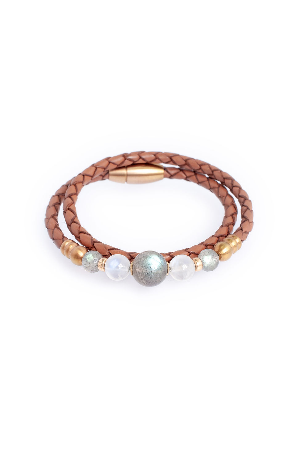 Lady Labradorite in 4mm Brown Double Wrap Leather